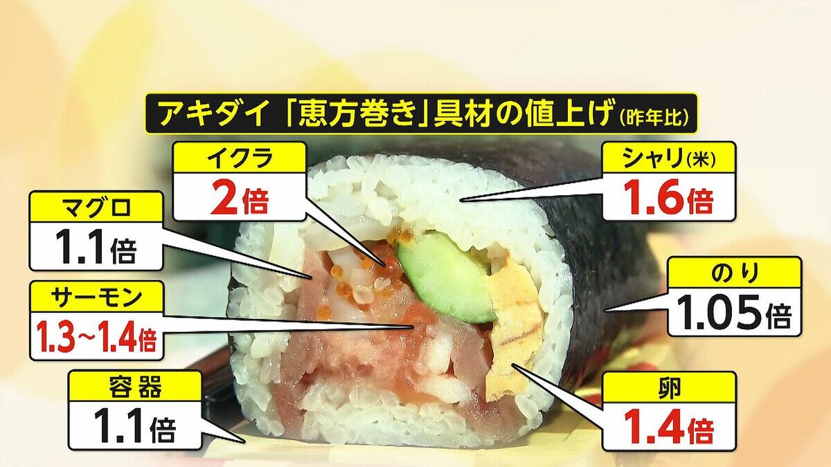「恵方巻き」を食べる日が近づくが…ここにも値上げの波
