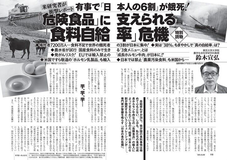 「有事の際の国民が飢餓に直面するリスクについて伺います。現在の日本の食料自給率は38%とされていますが