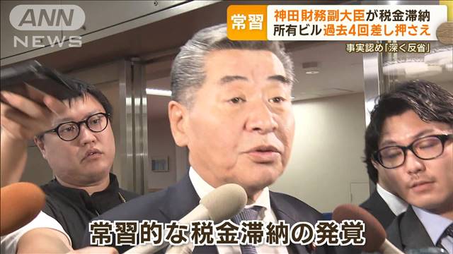 | 税金滞納の神田財務副大臣が辞表提出 「国会審議への影響避けたい」と陳謝 (出典:FNNプライムオンライン(フジテレビ系)) |