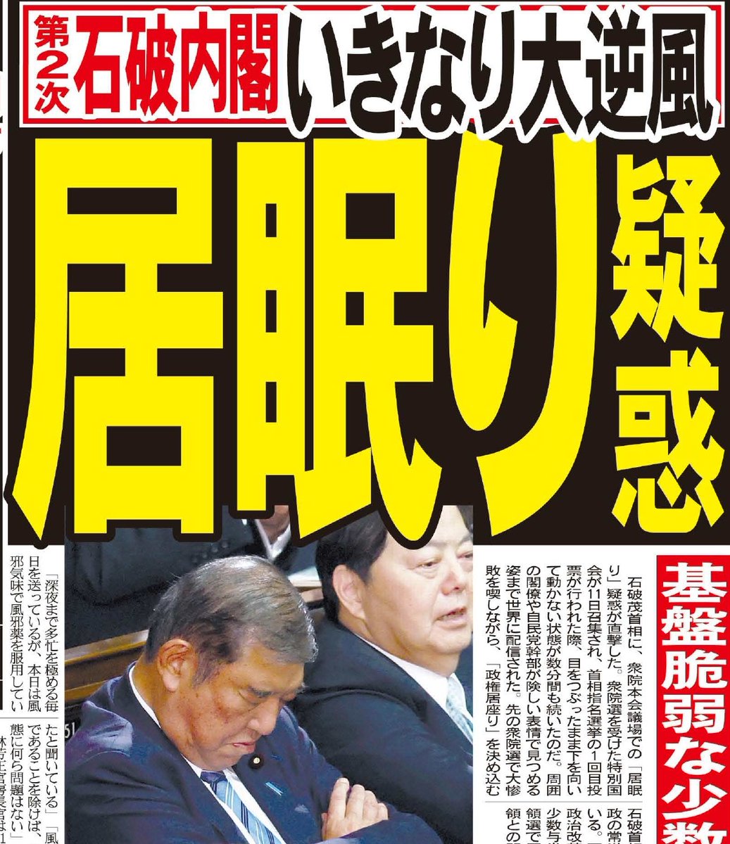 この日、Xでは首相指名の最中に自席…