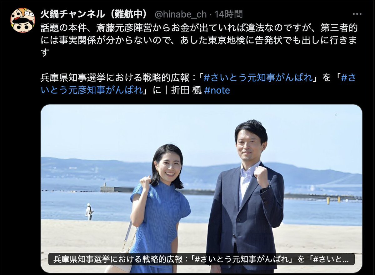 | 「兵庫県民は結局、踊らされてた」? 斎藤元彦知事の「SNS戦略」を“専属広報”が盛大にネタバレ…何がいちばん問題だったのか? …態になっている。 現段階では、違法行為に当たるか否かは定かではないのだが、今回の騒動から、政治、特に選挙における広報活動の問題が浮かび上がってくる。 (出典:) |