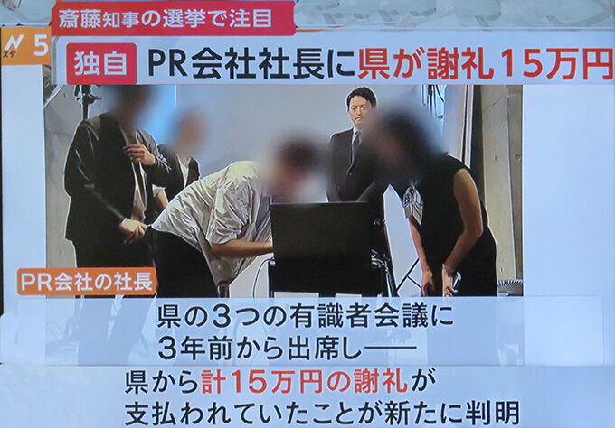 兵庫県知事選挙で再選した斎藤元彦知事の陣営で広報全般を任されたとするPR会社の社長が、県の有識者会議に3年前から有償で出席し、県から計15万円が支払われていたことがJNNの取材で分かりました。