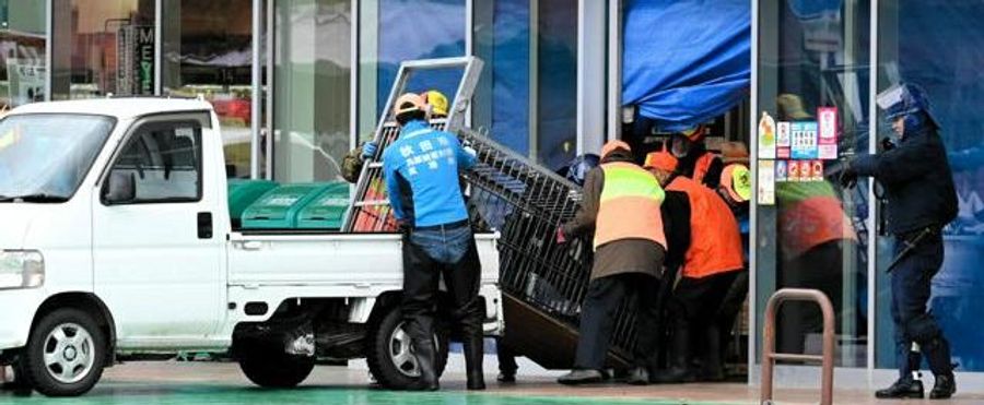 その後、猟友会が麻酔銃で眠らせてから店の外に運び出しました。