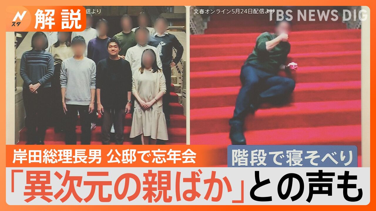 総理秘書官を務める長男・翔太郎氏が総理公邸で開いた“忘年会”で、赤じゅうたんが敷かれた階段で、組閣時の記念撮影を真似たような写真や親族と見られる人物が寝そべる写真などが週刊誌に報じられました。